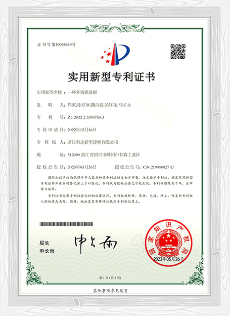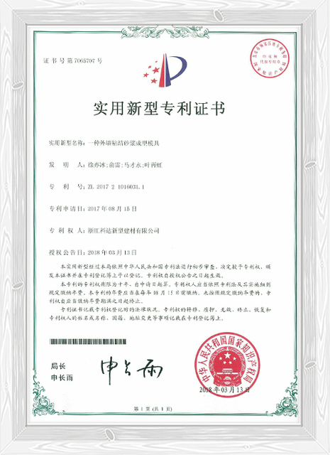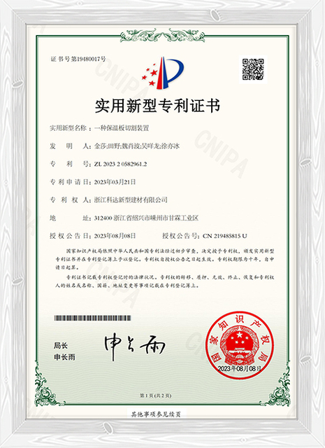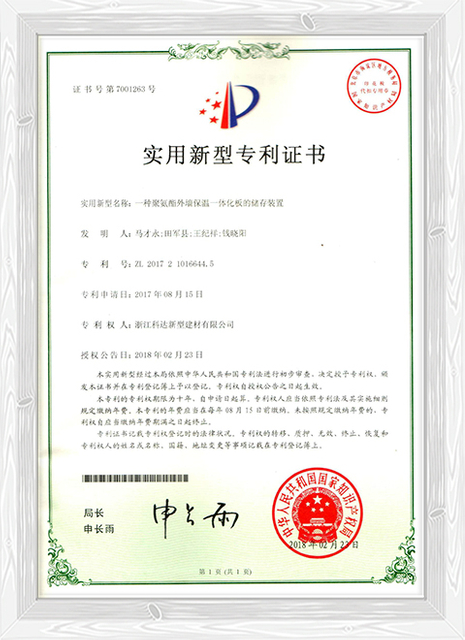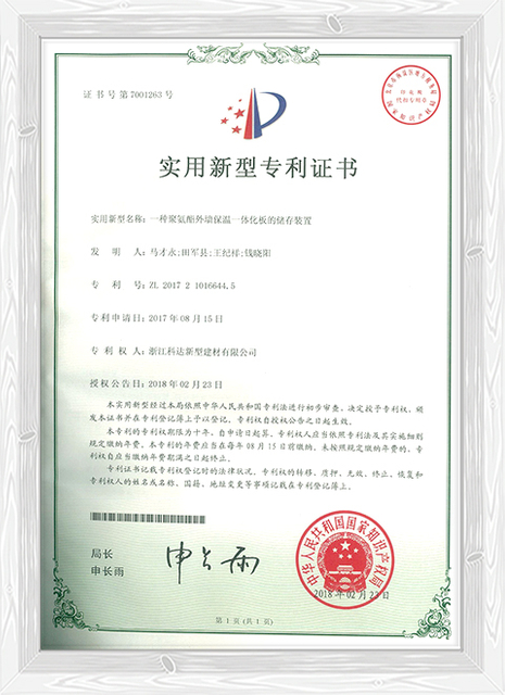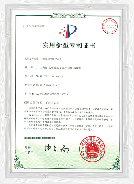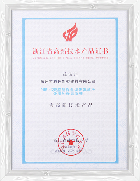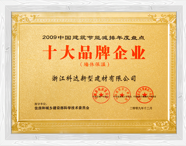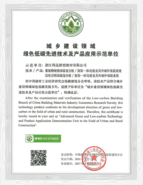 في عام 2010 ، تم تصنيفها كمؤسسة وطني للابتكار لتوفير الطاقة لتوفير الطاقة: تم إصدار اللوائح الفنية لنظام عزل الجدران الخارجي لعزل الرغوة الصارمة البولي يوريثان والمجلس المتكامل المزخرف في مقاطعة تشجيانغ التي حررتها الشركة وتنفيذها رسميًا. دخل نظام العزل المقاوم للماء والعزل الحراري في Greentown Real Estate وتم ترقيته واستخدامه في مشاريع الفيلا الرئيسية في جميع أنحاء البلاد.